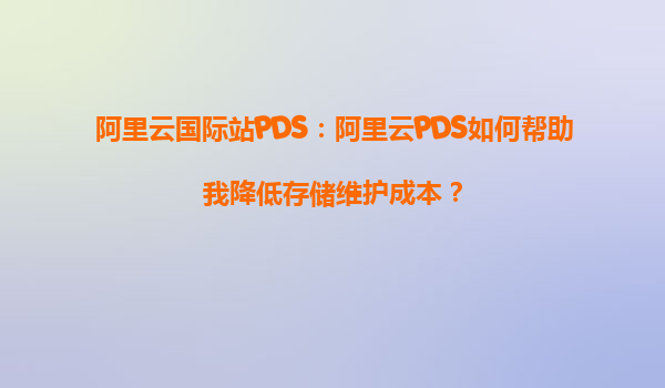 阿里云国际站PDS:阿里云PDS如何帮助我降低存储维护成本?