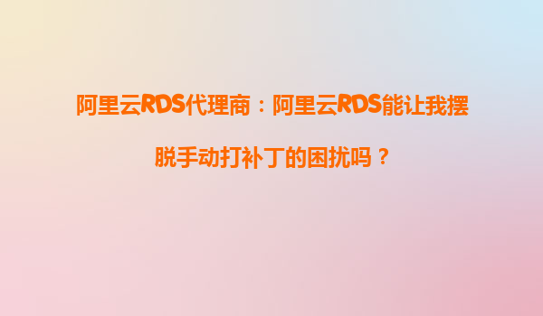 阿里云RDS代理商:阿里云RDS能让我摆脱手动打补丁的困扰吗?