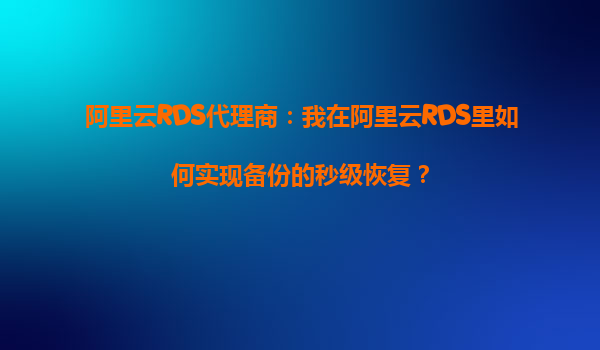 阿里云RDS代理商:我在阿里云RDS里如何实现备份的秒级恢复?
