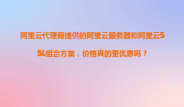 阿里云代理商提供的阿里云服务器和阿里云SSL组合方案,价格真的更优惠吗?