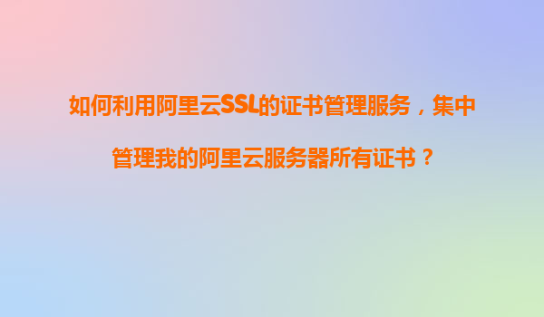 如何利用阿里云SSL证书管理服务集中管理服务器证书