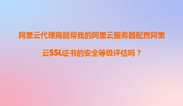 阿里云代理商能否帮您的阿里云服务器配置阿里云SSL证书的安全等级评估?