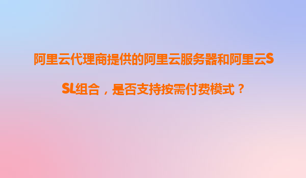 阿里云代理商提供的阿里云服务器和阿里云SSL组合,是否支持按需付费模式?