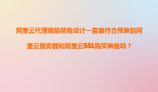 阿里云代理商能帮我设计一套最符合预算的阿里云服务器和阿里云SSL购买策略吗?