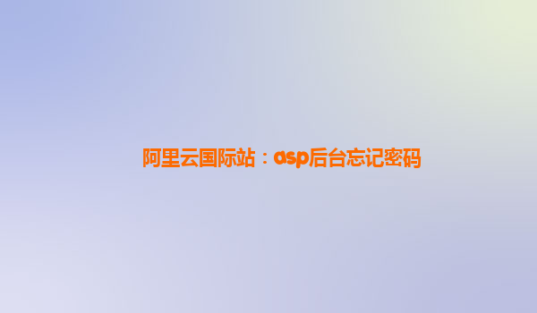 在阿里云国际站管理系统中,ASP后台的密码忘记问题通常出现在以下几种情况下:
