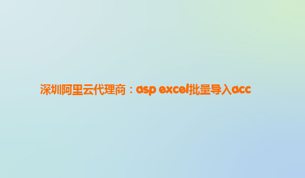 深圳阿里云代理商:ASP Excel批量导入ACC解决方案