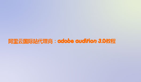 阿里云国际站代理商:Adobe Audition 3.0教程