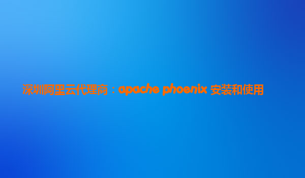 深圳阿里云代理商:Apache Phoenix 安装和使用