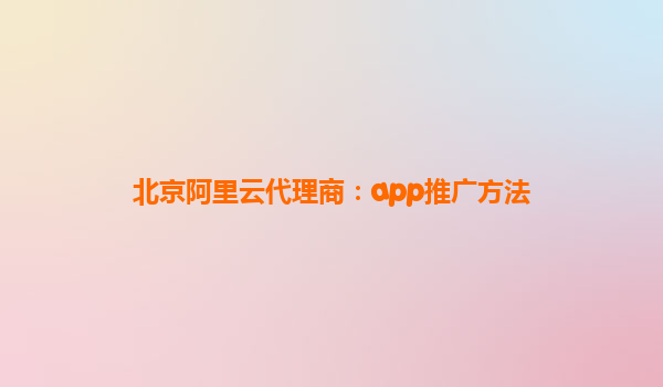 北京阿里云代理商:app推广方法