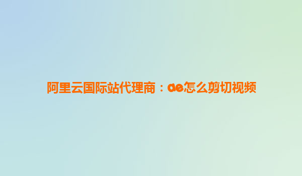 阿里云国际站代理商:AE怎么剪切视频