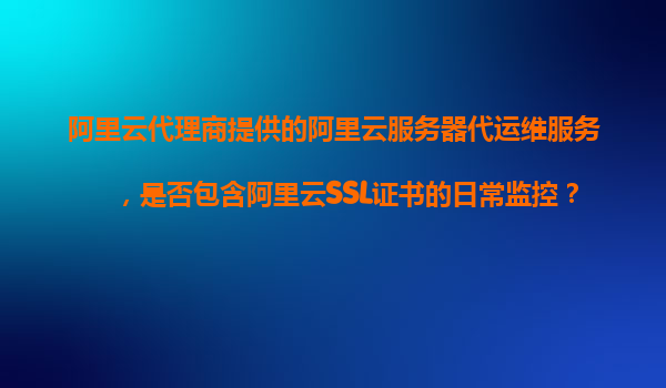 2025-11-18阿里云代理商提供的阿里云服务器代运维服务是否包含SSL证书日常监控? 前言:代运维服务的核心价值 阿里云代理商提供的服务器代运维服务旨在帮助企业用户降低技术门槛,从服务器部署、安全防护到日常维护提...