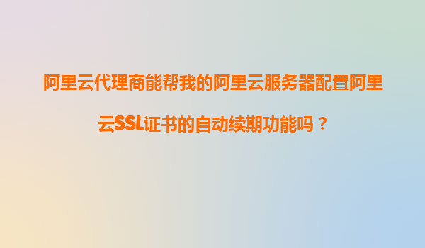 2025-11-17阿里云代理商能帮我的阿里云服务器配置阿里云SSL证书的自动续期功能吗? 一、阿里云SSL证书自动续期的必要性 在当今数字化时代,网站安全已成为企业运营的关键环节。SSL证书作为网站安全的基石,不仅能够加...