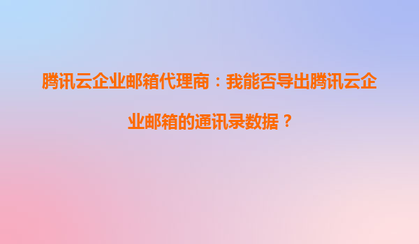 2025-10-19腾讯云企业邮箱代理商:通讯录数据导出功能详解 一、腾讯云企业邮箱的核心优势 作为国内领先的云服务提供商,腾讯云企业邮箱凭借其稳定高效的架构备受企业青睐。其采用分布式集群部署,确...