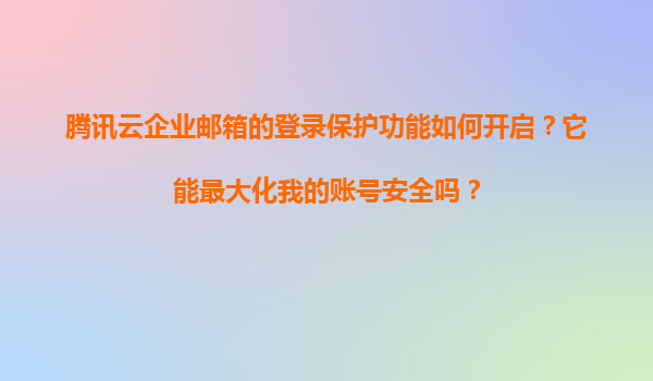 腾讯云企业邮箱登录保护功能详解:如何开启并最大化账号安全 一、腾讯云企业邮箱登录保护功能简介 腾讯云企业邮箱作为国内领先的企业级邮箱服务,提供了多重安全防护机制,其中登录保护...