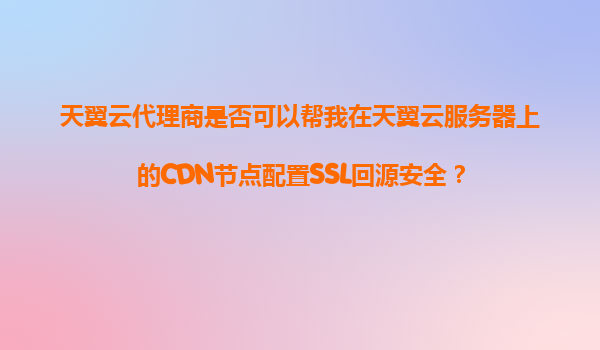 2025-11-08天翼云代理商如何帮助您在CDN节点配置SSL回源安全 一、SSL回源安全的重要性 随着网络安全威胁日益增多,SSL回源安全已成为保障CDN服务稳定性和数据隐私的关键环节。天翼云作为中国电信旗下的云计算品牌,其CDN服务...