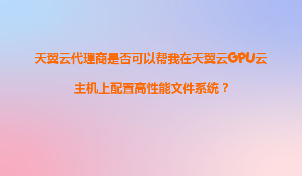 2025-11-08天翼云代理商如何助力企业配置高性能GPU云主机文件系统? 一、天翼云GPU云主机的核心优势 天翼云作为中国电信旗下的云计算服务品牌,其GPU云主机凭借三大优势成...