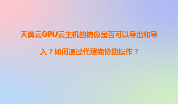 2025-11-07天翼云GPU云主机镜像的导出导入及代理商协作指南 一、天翼云GPU云主机镜像导出导入功能解析 天翼云作为中国电信旗下的云计算服务商,其GPU云主机广泛应用于AI训练、图形渲染等高算力场景。镜像的...