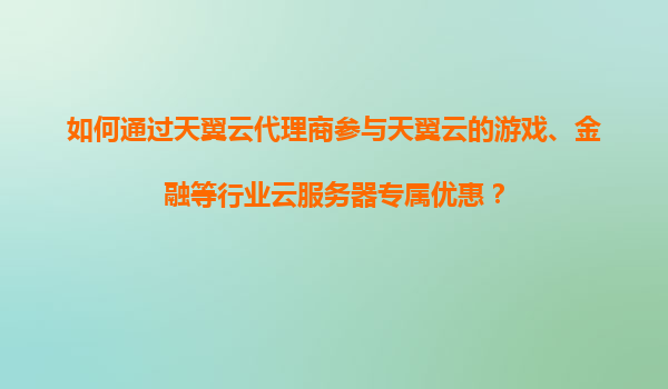 如何通过天翼云代理商参与天翼云的游戏、金融等行业云服务器专属优惠? 一、天翼云的核心优势 在选择云服务提供商时,天翼云凭借以下优势成为企业上云的首选: 央企背景:中国电信旗下品牌,服务稳定性与数据安...