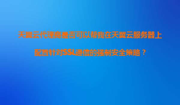 2025-11-07天翼云代理商是否可以帮助配置SSL通信的强制安全策略?——解析天翼云的安全优势 一、天翼云代理商的服务能力 天翼云作为中国电信旗下的云计算品牌,拥有完善的...