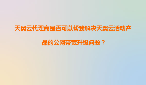 2025-11-07天翼云代理商:您的公网带宽升级问题解决专家 中国电信天翼云作为国内领先的云服务提供商,凭借其丰富的资源和技术优势,为各行各业提供稳定、高效的云计算服务。作为天翼云的合作伙伴,代理商在帮助用户解决各类云...