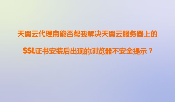 2025-11-07天翼云代理商如何解决SSL证书安装后的浏览器不安全提示问题? 引言 在当今数字化时代,网络安全已成为企业运营的重中之重。SSL(安全套接字层)证书作为网站安...