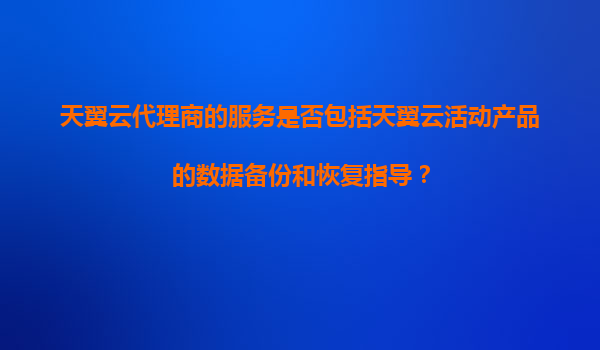 2025-11-07天翼云代理商的服务是否包括天翼云活动产品的数据备份和恢复指导? 天翼云代理商的服务范围 天翼云作为中国电信旗下的云计算服务品牌,通过广泛的代理商网络为用户提供全面的云服务支持。关于"...