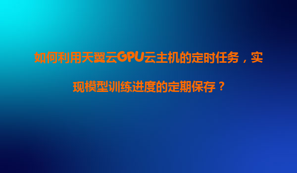 2025-11-07如何利用天翼云GPU云主机的定时任务,实现模型训练进度的定期保存? 一、天翼云GPU云主机的核心优势 天翼云GPU云主机凭借其高性能计算能力、弹性扩展和稳定可靠的特性,为深度学习模型训练提供了理想平台。...