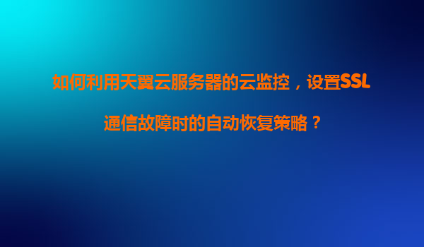 2025-11-07如何利用天翼云服务器的云监控设置SSL通信故障自动恢复策略 天翼云服务器的核心优势 在探讨具体方案前,首先需要了解天翼云服务器的核心优势。作为中国电信旗下的云计算...