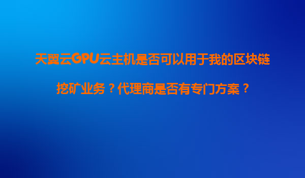 2025-11-07天翼云GPU云主机在区块链挖矿业务中的应用与代理商专属方案 一、天翼云GPU云主机对区块链挖矿的适配性 区块链挖矿业务高度依赖算力资源,而GPU云主机凭借其并行...