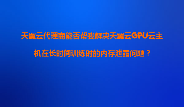 2025-11-07天翼云代理商能否帮我解决天翼云GPU云主机在长时间训练时的内存泄露问题? 1.天翼云GPU云主机的应用场景与技术优势 天翼云GPU云主机凭借高性能计算能力,广泛应用于深度学习、科学计算...