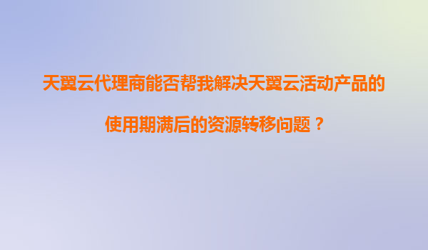 2025-11-07天翼云代理商如何协助解决活动产品到期后的资源转移问题 天翼云产品活动的优势与价值 天翼云作为中国电信旗下云计算品牌,长期推出各类优惠活动产品,如新用户特惠、套餐升级折扣等。这些活动产品通常具有...