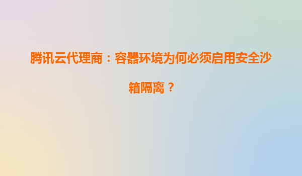 腾讯云代理商:容器环境为何必须启用安全沙箱隔离?