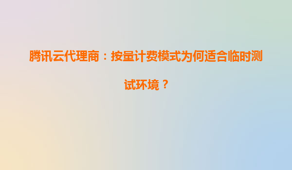 腾讯云代理商按量计费模式:临时测试环境的理想选择