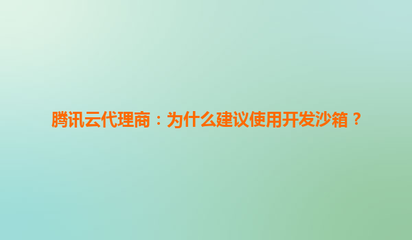 腾讯云代理商:为什么建议使用开发沙箱?