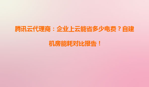 企业上云 vs 自建机房:能耗成本对比与腾讯云优势解析