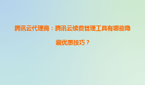 腾讯云代理商:腾讯云续费管理工具有哪些隐藏优惠技巧?