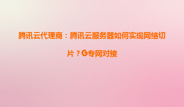 腾讯云服务器如何实现网络切片与G专网对接?