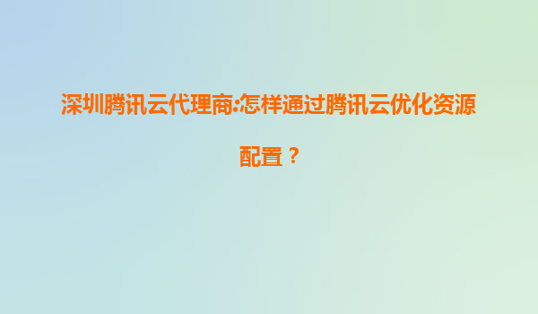 深圳腾讯云代理商:如何通过腾讯云优化企业资源配置