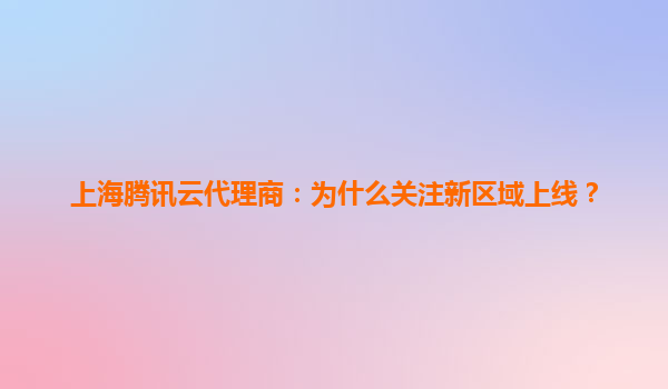 上海腾讯云代理商:为什么必须关注新区域上线?