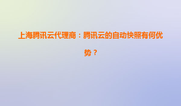 上海腾讯云代理商解析:腾讯云自动快照的核心优势