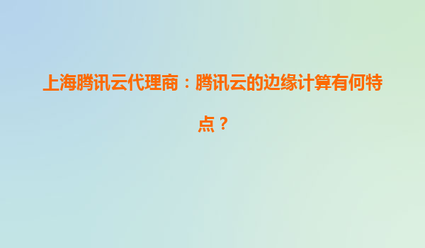 上海腾讯云代理商:腾讯云的边缘计算有何特点?