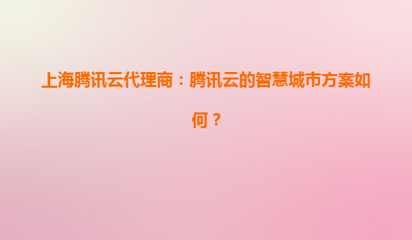 上海腾讯云代理商:腾讯云的智慧城市方案如何?