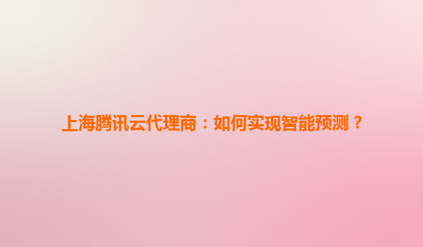 上海腾讯云代理商视角:如何利用腾讯云实现智能预测