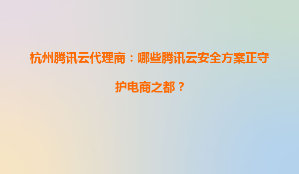 杭州腾讯云代理商:哪些腾讯云安全方案正守护电商之都?