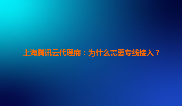 上海腾讯云代理商:为什么需要专线接入?