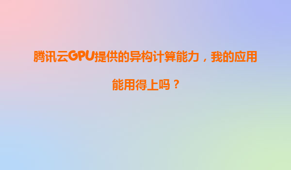 腾讯云GPU提供的异构计算能力,我的应用能用得上吗?