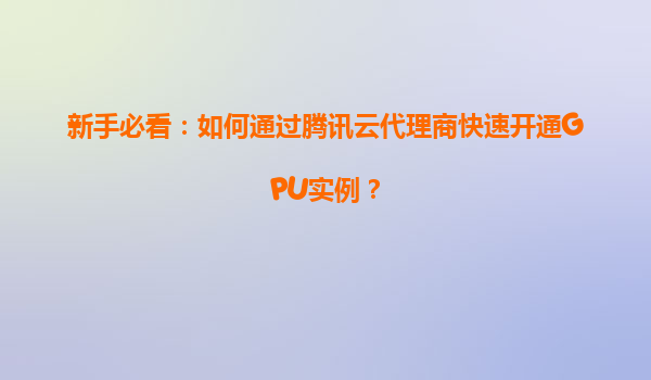 本文为新手用户详细解析如何通过腾讯云代理商快速开通GPU实例,同时结合腾讯云的技术优势和服务亮点,帮助您轻松实现高性能计算需求。