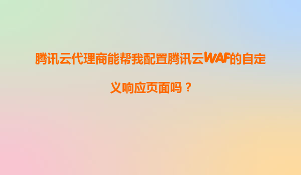 腾讯云代理商能否协助配置腾讯云waf自定义响应页面?深度解析与服务优势