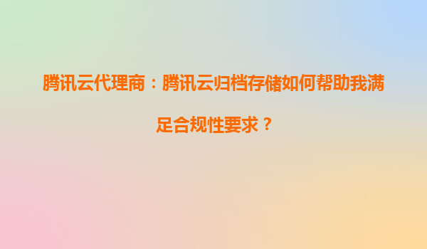 腾讯云代理商:腾讯云归档存储如何帮助企业满足合规性要求? 引言 在数字化时代,数据已成为企业的核心资产之一。随着数据量的爆炸式增长,如何安全、合规地存...