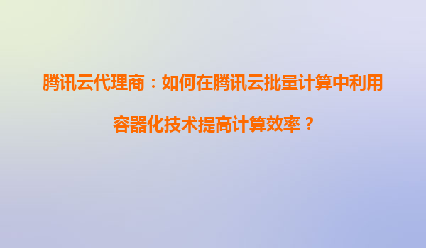 2025-09-16腾讯云代理商:如何在腾讯云批量计算中利用容器化技术提高计算效率? 1.腾讯云批量计算服务的核心优势 腾讯云批量计算(BatchCompute)是一种适用于大规模并行计算的高性能服务,其天然契合容器化技术...